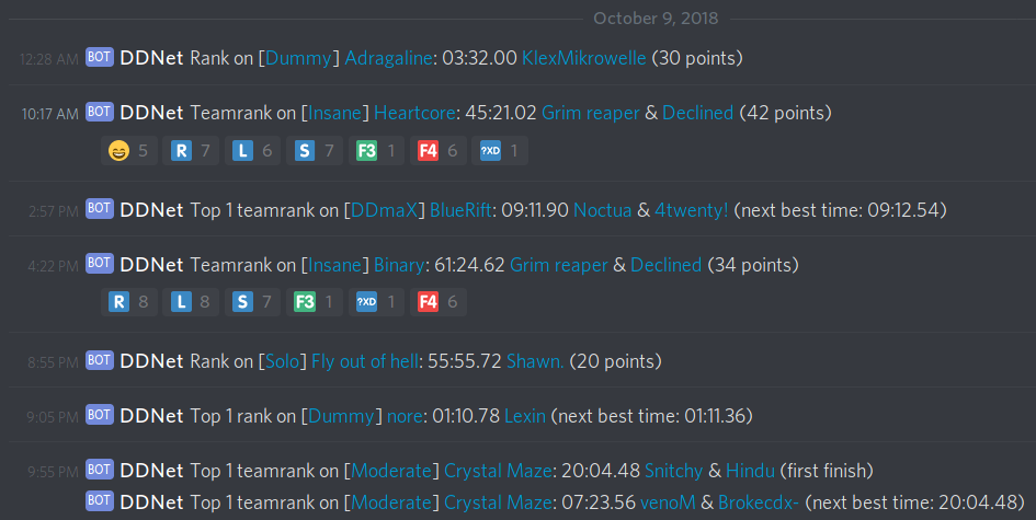 Recently the @DDNet bot on the official DDNet Discord server has been extended by jao.
